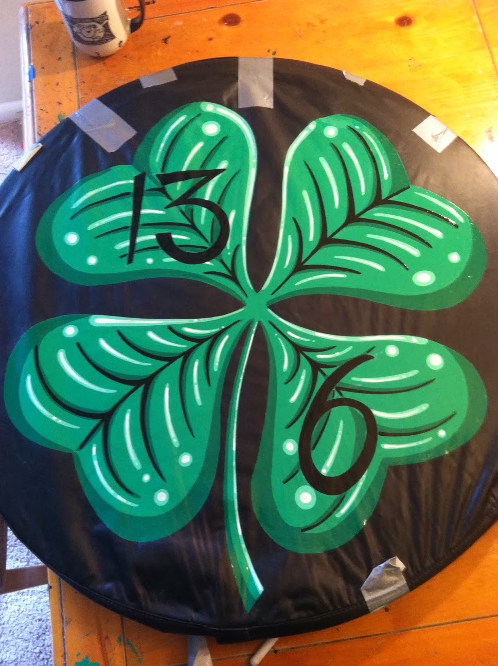 For a couple of days this past week, Bob painted a wheel cover for a client that he talked with at the past artshow at the Virginia Beach Convention Center.